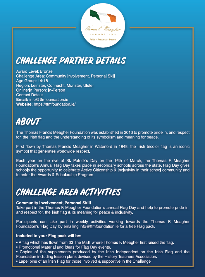 Thomas F Meagher Gaisce Challenge Partner Programme